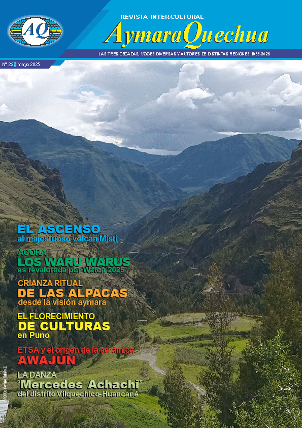 omenzamos con renovadas ilusiones y con inmensas ganas de seguir adelante como premisa, ofrecemos expresiones de la Revista “AymaraQuechua” (AQ) para un acto de lectura, el abanico de voces y miradas. Estimados lectores incansables, amantes de lectura palabras escritas, en esta página de vasto océano digital que nos permite, nos complace presentar las entregas de cada edición de la Revista “AymaraQuechua” en su versión digital online, que es también vuestra, acompañado de expresiones imágenes y artículos escritas, entre publicaciones anteriores de AQ. Cada entrega con la misma pasión y emoción se traduce en un pequeño logro, cada una de sus páginas es un viaje, una aventura o un encuentro, en donde las palabras escritas se convierten en un proceso de información importante y, de modo especial de entretenimiento, capaz de lograr una placentera lectura seguida por una y otra página, o de par en par los artículos publicados de la revista, algunas serán interesantes unas que otras, pero pueda que sea más interesante para los que aman la lectura y así conocer algo de amenidad que caracteriza cada edición de la revista, notas de actualidad, historias citadas, ensayos académicos, identidad cultural, interculturalidad, relatos populares de cuentos, mitologías, leyendas y poesías, memorias ancestrales tan ricas, relatos biográficos de sensibilidad humana, lugares o sitios de valor arqueológico, como de la lingüística histórica, análisis coyuntural y reflexión, pensamiento crítico y entrevistas concedidas, entre otros, entretejida con una visión reflexiva y fecunda en la afirmación cultural de los pueblos aymara y quechua del altiplano andino, en la posibilidad de entrega en sus páginas diversos temas (última edición).
